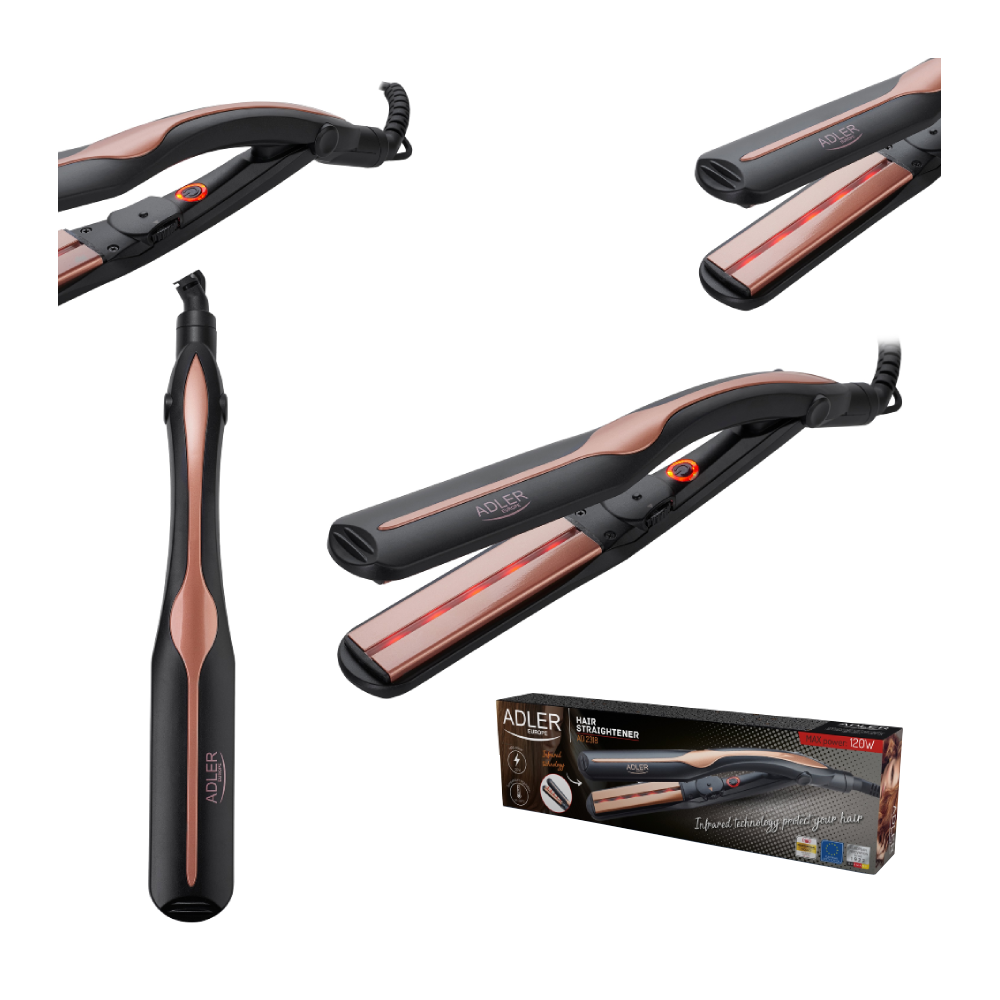 ADLER AD 2318 infracrvena pegla za kosu idealna je za sve koji žele profesionalne rezultate oblikovanja kose kod kuće. Opremljena je keramičkim pločama dimenzija 25 × 90 mm, koje obezbjeđuju ravnomjeran prijenos toplote i nježan kontakt sa kosom, čuvajući njen zdrav izgled.