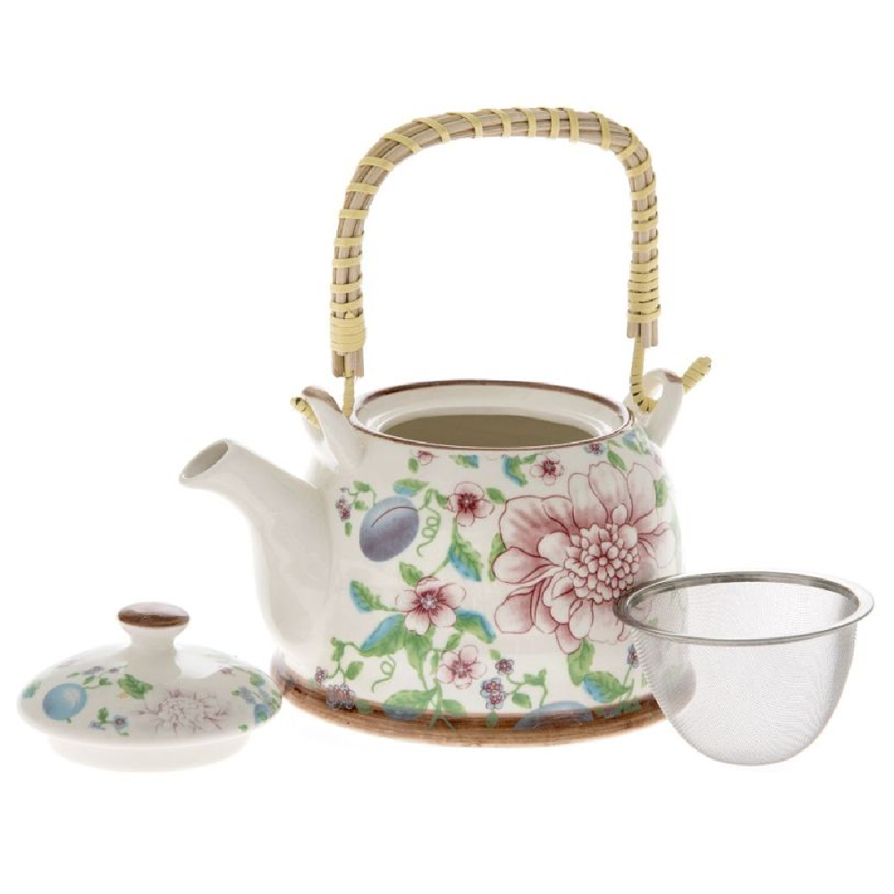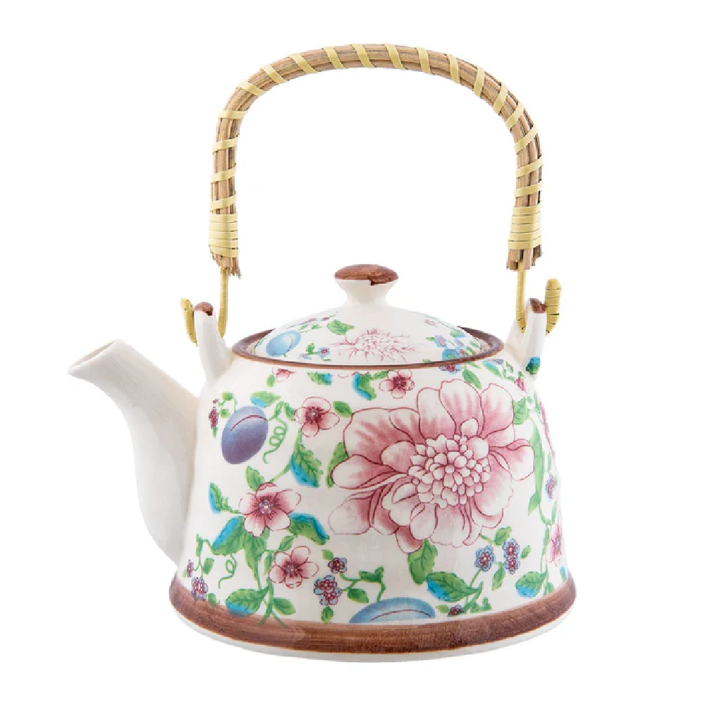 Čajnik sa cjedilom od 900 ml izrađen je od kvalitetnog porculana, ukrašen nježnim cvjetnim motivima koji unose toplinu i eleganciju u svaki prostor. Zahvaljujući ugrađenom cjedilu, priprema čaja je jednostavna i čista — bez potrebe za dodatnim filterima. Savršen je za pripremu raznih vrsta čajeva, bilo da se radi o listićima ili biljnim mješavinama. Njegov kapacitet od 900 ml čini ga idealnim za dijeljenje čaja s prijateljima ili uživanje u više šoljica tokom dana. Ovaj čajnik je ne samo funkcionalan, već i dekorativan dodatak svakoj kuhinji ili dnevnom boravku.