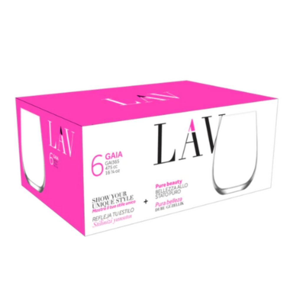 Set čaša LAV sadrži 6 komada, svaka zapremine 360 ml, izrađenih od kvalitetnog stakla koje osigurava dugotrajnost i eleganciju. Zahvaljujući modernom i jednostavnom dizajnu, ove čaše savršeno se uklapaju u svaki stil trpezarije ili kuhinje. Pogodne su za posluživanje vode, sokova, koktela i drugih napitaka. Lako se održavaju i perive su u mašini za suđe, što ih čini praktičnim izborom za svakodnevnu upotrebu i posebne prilike.