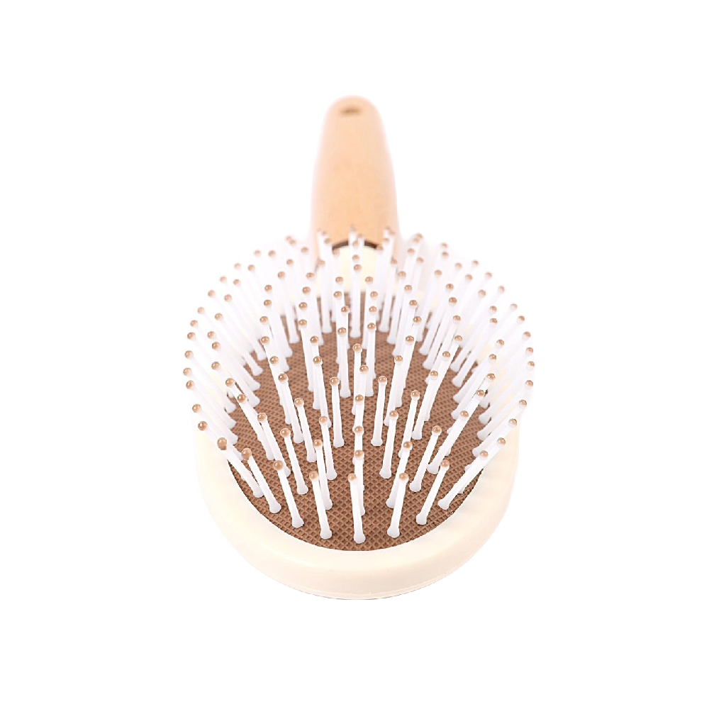 Uživajte u nježnoj i efikasnoj njezi kose uz ovalnu četku za kosu s elegantnom drvenom drškom. Zahvaljujući ovalnom obliku glave i gustim plastičnim zupcima sa zaobljenim vrhovima, ova četka omogućava glatko raščešljavanje bez čupanja i iritacije vlasišta. Mekana podloga pruža dodatnu fleksibilnost i udobnost pri korištenju.