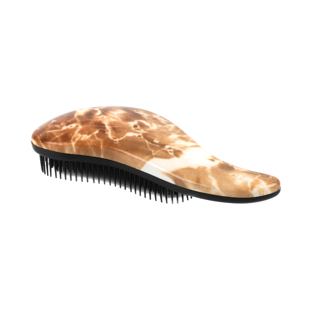 Uživajte u svakodnevnoj njezi kose uz ovalnu četku za kosu s elegantnim dizajnom i ergonomskom drškom. Zahvaljujući gustim plastičnim zupcima, četka omogućava glatko raščešljavanje bez čupanja i oštećenja vlasi. Dekorativna baza s mramornim uzorkom u nijansama smeđe i bijele daje sofisticiran izgled, čineći ovu četku ne samo praktičnim, već i estetski privlačnim dodatkom.