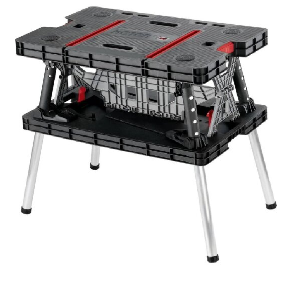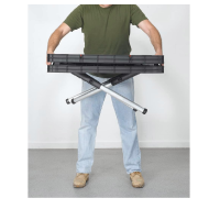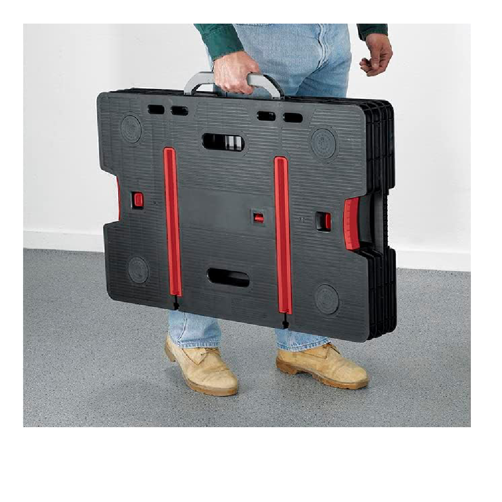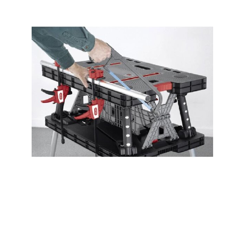 Lagan, ali čvrst okvir omogućuje jednostavno sklapanje i lako prenošenje, dok istovremeno bez problema podnosi opterećenje do 450 kg. Zahvaljujući jedinstvenom sistemu sklapanja, radna stanica se brzo postavlja i jednako jednostavno skladišti, što je čini idealnom za radionice, garaže i terenski rad.