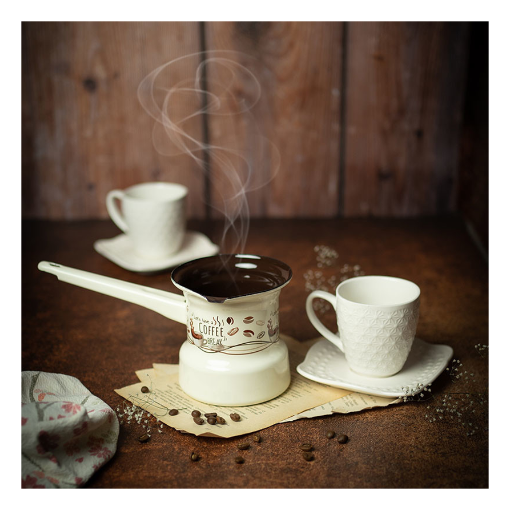Pogodna je za pripremu do 6 šoljica domaće kafe, a ravnomjerno prostiranje toplote omogućava brzu i efikasnu pripremu. Ergonomska ručka osigurava sigurno rukovanje, dok emajl pruža otpornost na kiseline i visoke temperature.