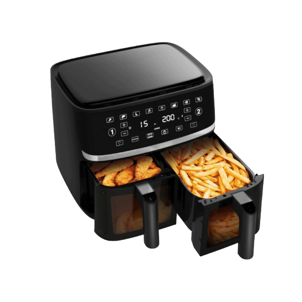 Friteza na vrući zrak AMIKO A60 idealan je izbor za sve koji žele pripremati ukusne i zdrave obroke bez dodavanja ulja. Zahvaljujući zapremini od 10 litara (dvije posude po 5 L), omogućava istovremenu pripremu različitih namirnica, što je savršeno za obitelji ili veće obroke.