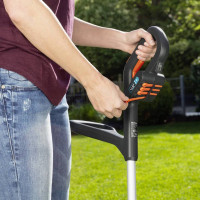 Trimer je opremljen RotorCut sistemom rezanja koji osigurava ravnomjernu i čistu košnju. Ergonomska glavna ručka i dodatna ručka pružaju dobru kontrolu i stabilnost tokom rada. Integrisana litij‑ionska baterija jednostavna je za održavanje, može se puniti u bilo kojem trenutku bez memorijskog efekta i osigurava pouzdan rad za redovno održavanje travnjaka. Rezervne oštrice praktično su smještene ispod ručke, tako da su uvijek pri ruci.