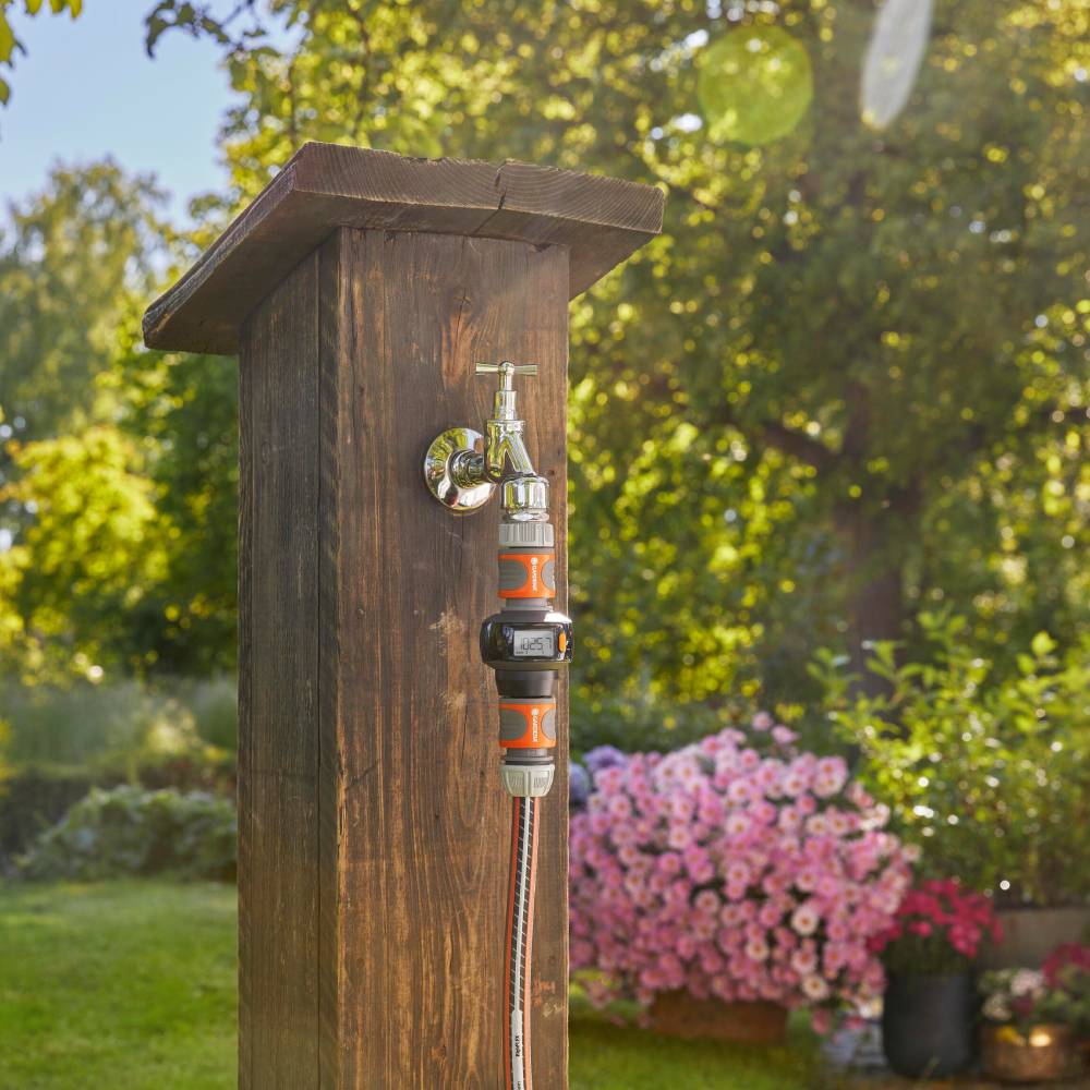 Mjerač se može priključiti direktno na slavinu ili na kraj vrtnog crijeva, u horizontalnom ili vertikalnom položaju. Veliki rotirajući displej omogućava lako očitavanje u svakoj poziciji. Uređaj nudi četiri funkcije koje pružaju detaljne informacije o potrošnji i protoku vode. Zahvaljujući priloženoj bateriji, mjerač je odmah spreman za rad bez dodatnih priprema. Kućište je UV stabilno, otporno na mraz i jednostavno za održavanje, što omogućava cjelogodišnju upotrebu u vrtu.