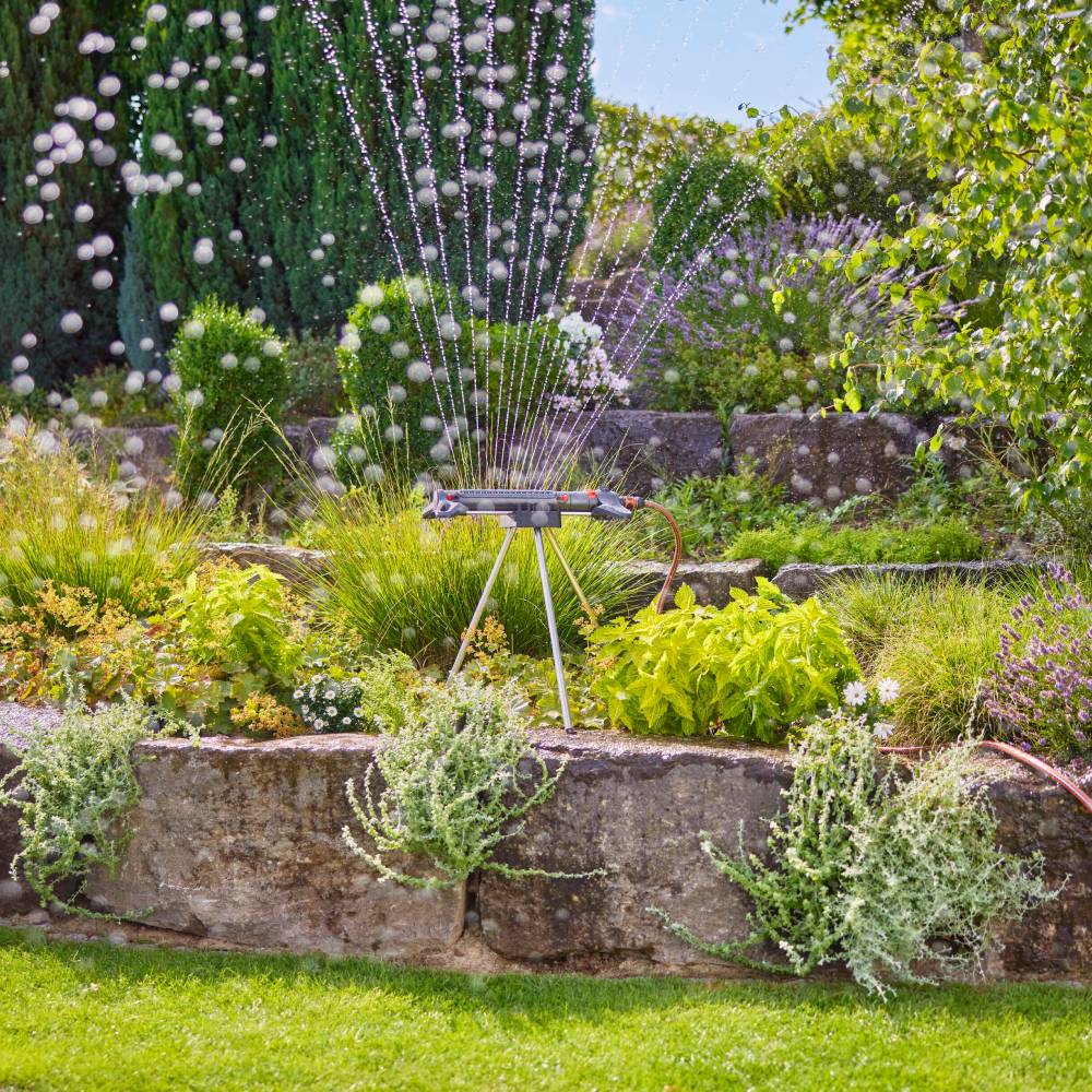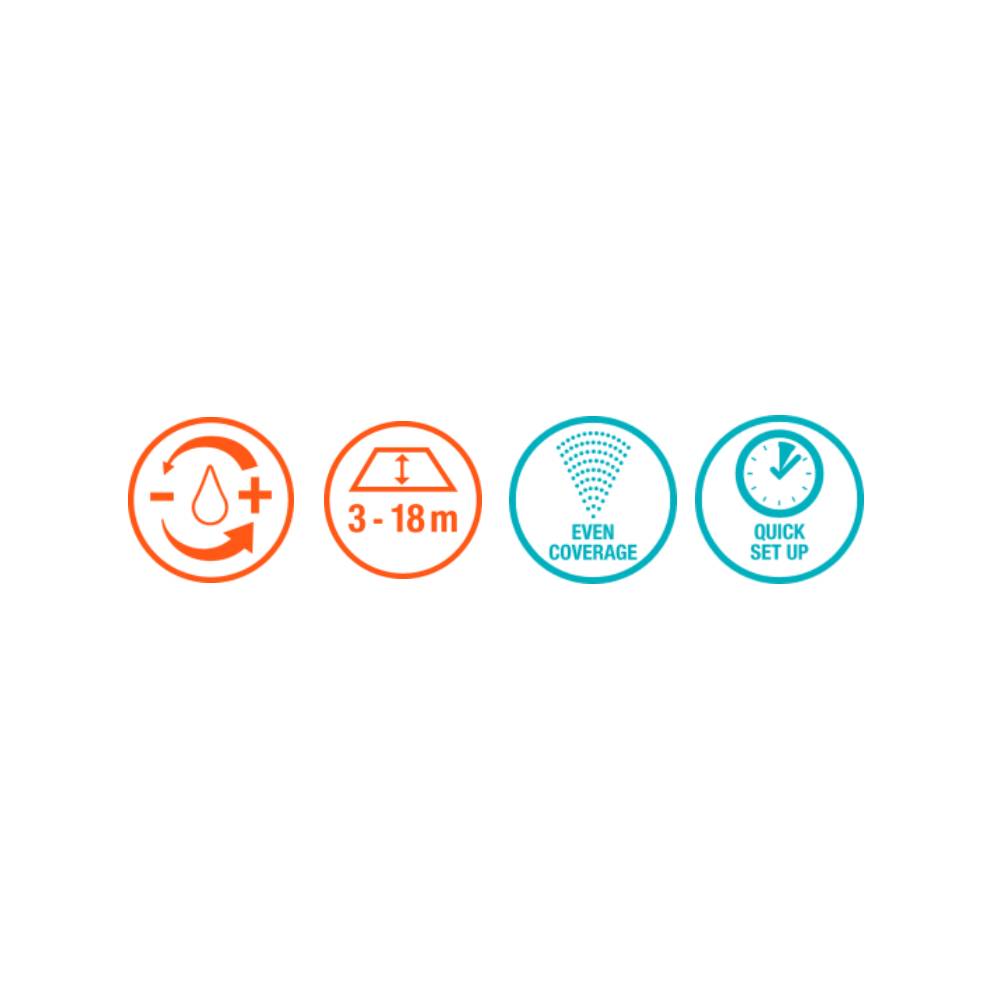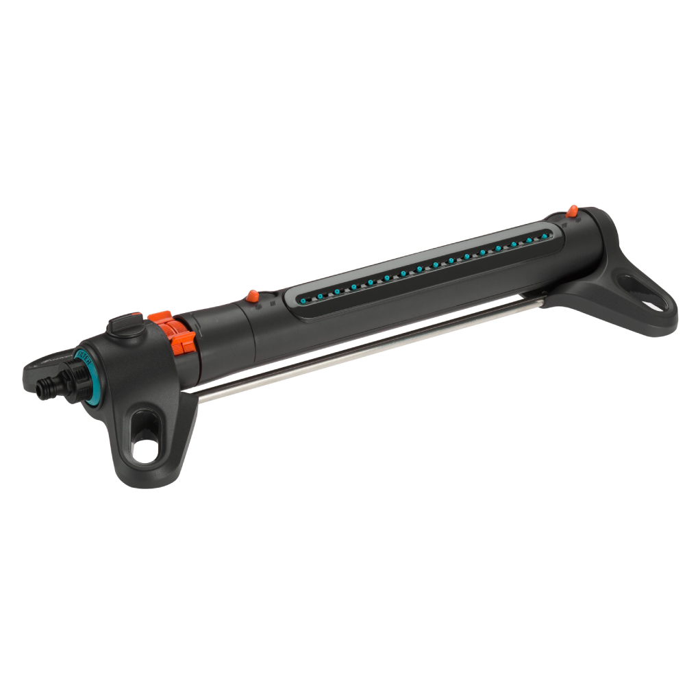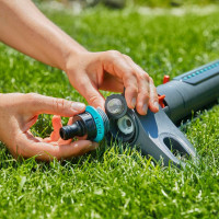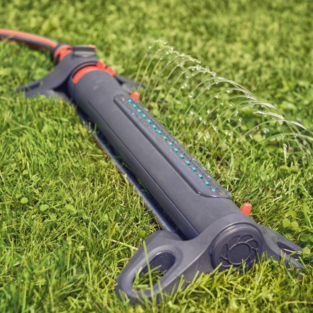Zahvaljujući intuitivnim klizačima, moguće je pojedinačno podesiti domet, širinu raspršivanja i protok vode. Na taj način zalijevaju se isključivo željena područja, uz minimalnu potrošnju vode. Po potrebi je dostupna i opcija zalijevanja samo jedne strane, što dodatno povećava kontrolu kod nepravilno oblikovanih travnjaka. Stabilnost tokom rada osiguravaju dva široka nosača, dok kvalitetna izrada garantuje dugotrajan i pouzdan rad u svim vremenskim uslovima.