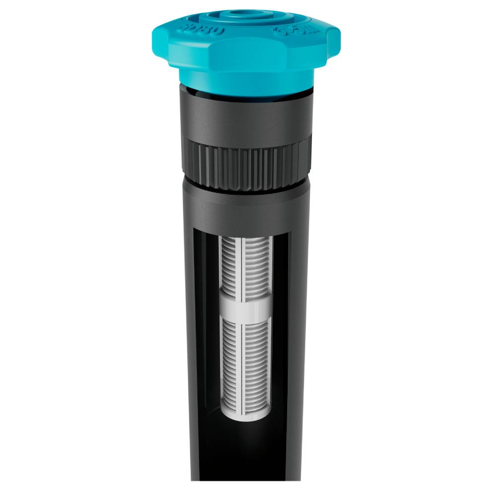 Zahvaljujući podzemnoj ugradnji, raspršivač je gotovo nevidljiv u vrtu i pojavljuje se samo tokom rada. Raspon i sektor raspršivanja mogu se jednostavno podešavati bez alata – ugao prskanja od 5° do 360°, a domet između 3 i 5 metara. Time se navodnjavanje lako prilagođava obliku i veličini travnjaka, bez preklapanja ili prekomjernog zalijevanja.