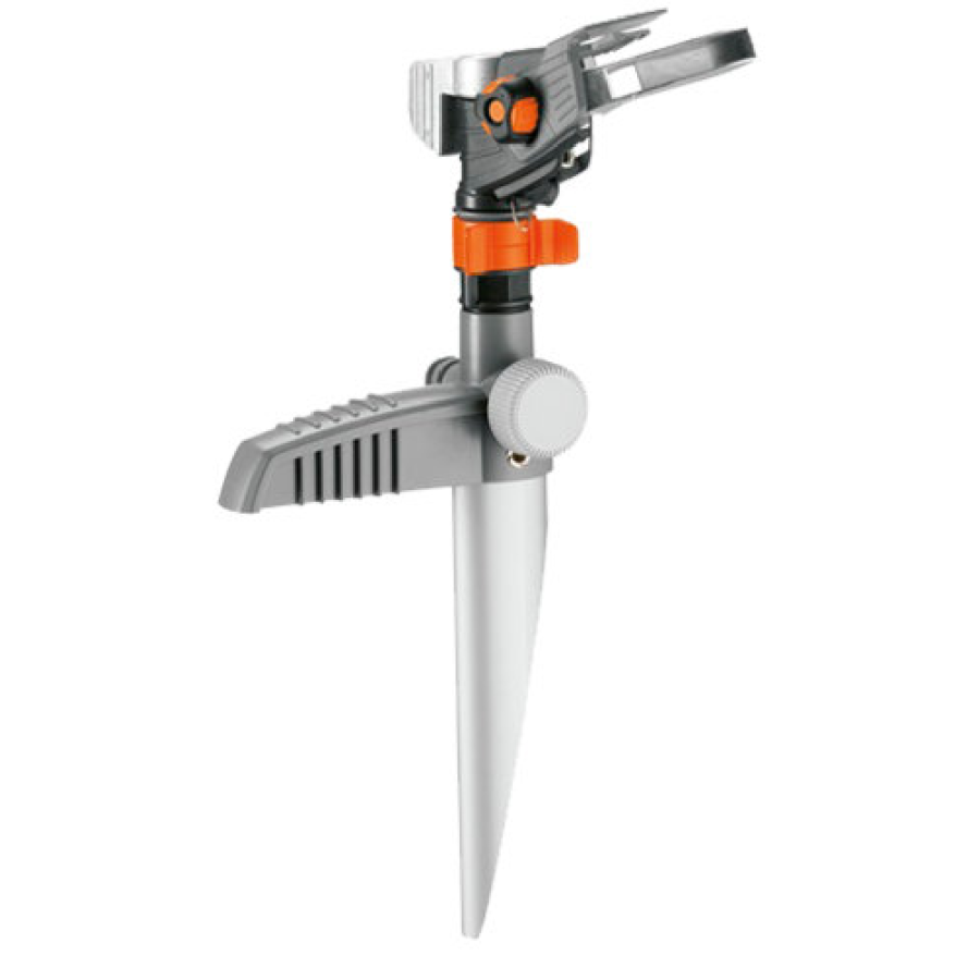 Gardena premium kružni, sektorski i impulsni raspršivač sa šiljkom idealan je za učinkovito navodnjavanje velikih vrtnih i travnatih površina. Izrađen je od kombinacije čvrstog metala i plastike, što mu osigurava visoku stabilnost i dug vijek trajanja, dok stabilna glava raspršivača omogućava pouzdano i precizno zalijevanje.