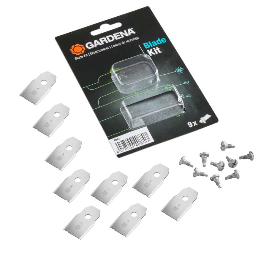 Komplet sadrži devet oštrica i devet pripadajućih pričvrsnih vijaka. Budući da GARDENA robotske kosilice rade sa tri noža istovremeno, ovaj set omogućava potpunu zamjenu noževa do tri puta. Redovna zamjena sprječava trošenje mehanizma i osigurava optimalne performanse kosilice tokom cijele sezone.