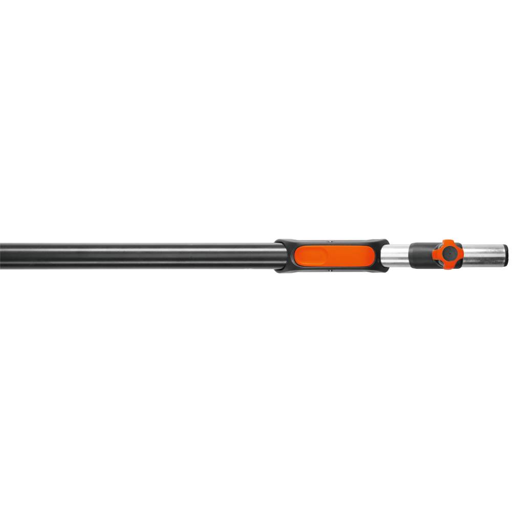 Integrisani prigušivač sprječava nenamjerno i naglo sklapanje teleskopske drške, čime se smanjuje rizik od povreda. Učvrsni vijak s elementima od mekane plastike osigurava čvrst, siguran i stabilan spoj između drške i GARDENA combisystem alata. Drška je kompatibilna sa svim combisystem nastavcima, posebno pogodna za radove poput rezidbe, orezivanja i čišćenja na velikim visinama.