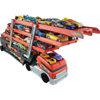 Unesi maksimalnu zabavu i organizaciju u svijet Hot Wheels igračaka s Mega Transporter kamionom! Ovaj masivni kamion dizajniran je da prevozi tvoju kolekciju – ima više nivoa i može smjestiti do 50 Hot Wheels autića. Kompatibilan je s drugim Hot Wheels stazama i setovima, pa ga možeš povezati i kreirati vlastiti svijet utrka.