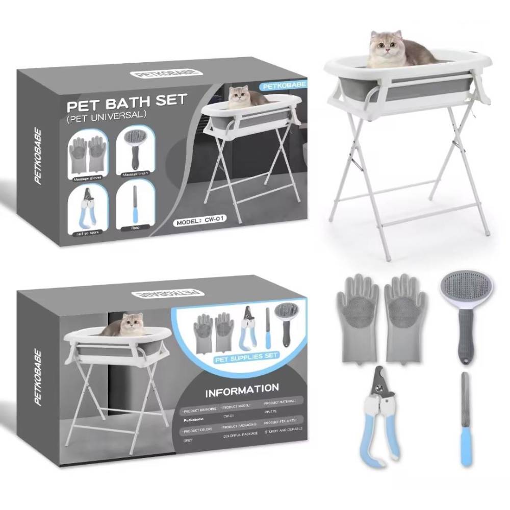 Kada za kupanje kućnih ljubimaca sa priborom za njegu praktično je i funkcionalno rješenje za održavanje higijene pasa i drugih manjih kućnih ljubimaca u kućnim uslovima. Dizajnirana je tako da olakša kupanje, spriječi prskanje vode i učini cijeli proces ugodnijim kako za vlasnika, tako i za ljubimca.