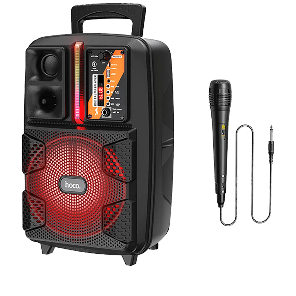 HOCO BS37 je praktičan bežični karaoke zvučnik namijenjen zabavi kod kuće, na druženjima ili manjim događajima. Opremljen je kvalitetnim 8‑inčnim zvučnikom i mikrofonom, pružajući jasan i snažan zvuk uz ukupnu snagu do 15W. Zahvaljujući Bluetooth v5.0 tehnologiji, omogućava brzo i stabilno povezivanje sa svim modernim uređajima – pametnim telefonima, tabletima, računarima i laptopima.