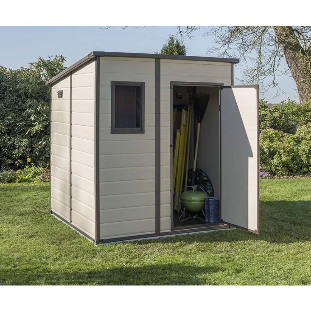 Kućica za vrt MANOR PENT 6x6 od Keter-a predstavlja savršen dodatak svakom vrtu. Ova praktična, elegantna i jednostavna za montažu kućica ne zahtijeva održavanje i savršeno se uklapa u vaš vanjski prostor. Idealna je za odlaganje baštenske opreme i alata, pružajući sigurno i suho skladište. S ugrađenom ventilacijskom pločom, omogućava stalni protok zraka, što štiti od prekomjernog stvaranja vlage i sprječava truljenje predmeta.