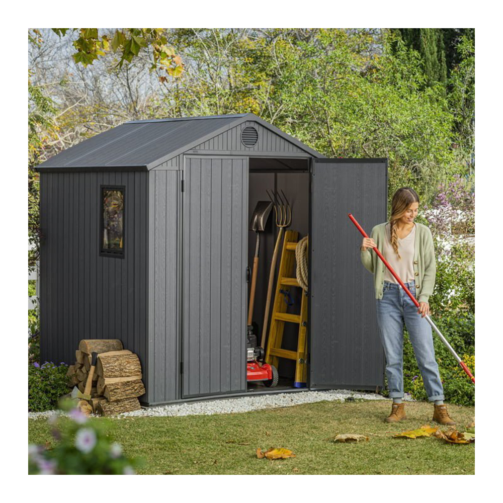 Ova moderna i izuzetno funkcionalna vrtna kućica savršeno je rješenje za odlaganje alata, opreme i svega što želite držati uredno i zaštićeno u svom vrtu. Dizajnirana je tako da kombinuje praktičnost, dugotrajnost i estetski izgled sličan prirodnom drvetu, ali uz sve prednosti visokokvalitetne plastike.