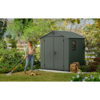 Dvostruke stijenke debljine 16 mm osiguravaju čvrstoću i krutost konstrukcije. Vrata koja se mogu zaključati dodaju eleganciju i osiguravaju sigurno skladištenje vrtnog alata. Kuća je opremljena dvostrukim ulaznim vratima za lakši transport velike vrtne opreme. Visok strop osigurava udobno kretanje u unutrašnjosti, a prozor i ugrađena ventilacija optimalne uvjete skladištenja.