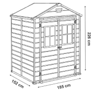 Izrađena od visokokvalitetnih materijala, naša vrtna kućica je izdržljiva i otporna na vremenske uslove, čineći je idealnim mjestom za skladištenje vrtnih alatki, vrtnog namještaja ili sezonskih ukrasa. Njen prostrani unutrašnji prostor omogućava organizaciju i lahko pristupanje vašim potrebama za vrtom.