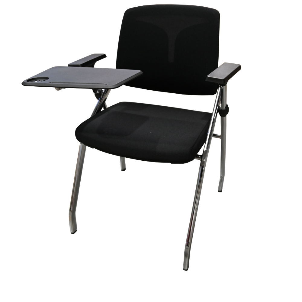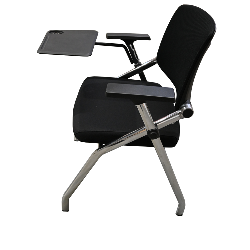 Sklopiva kongresna stolica u crnoj boji idealna je za konferencijske sale, učionice, kancelarije i sve prostore gdje je potrebna praktičnost uz udobnost. Opremljena preklapajućim dodatkom koji služi kao mini radna površina – savršen za rokovnik, bočicu vode ili tablet – ova stolica omogućava korisnicima da rade, pišu ili uče bez potrebe za dodatnim stolom.