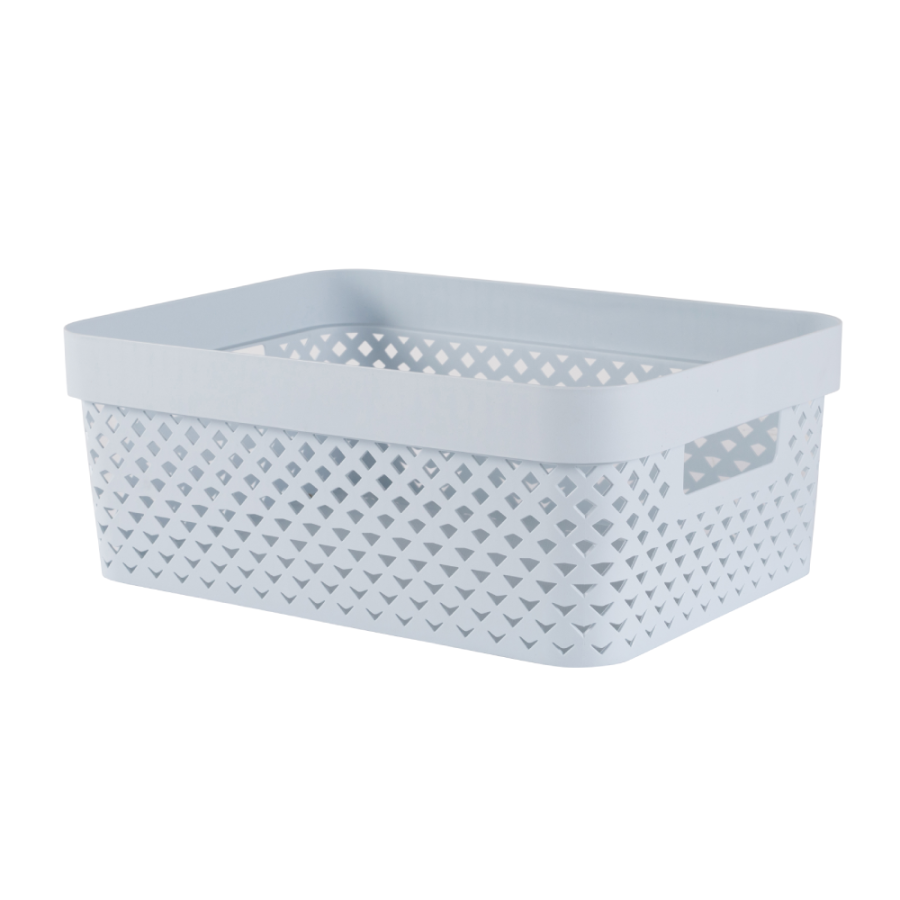 Svijetloplava boja unosi svježinu i lako se uklapa u moderne enterijere. Korpa ima integrisane ručke koje omogućavaju udobno nošenje i jednostavno premještanje.