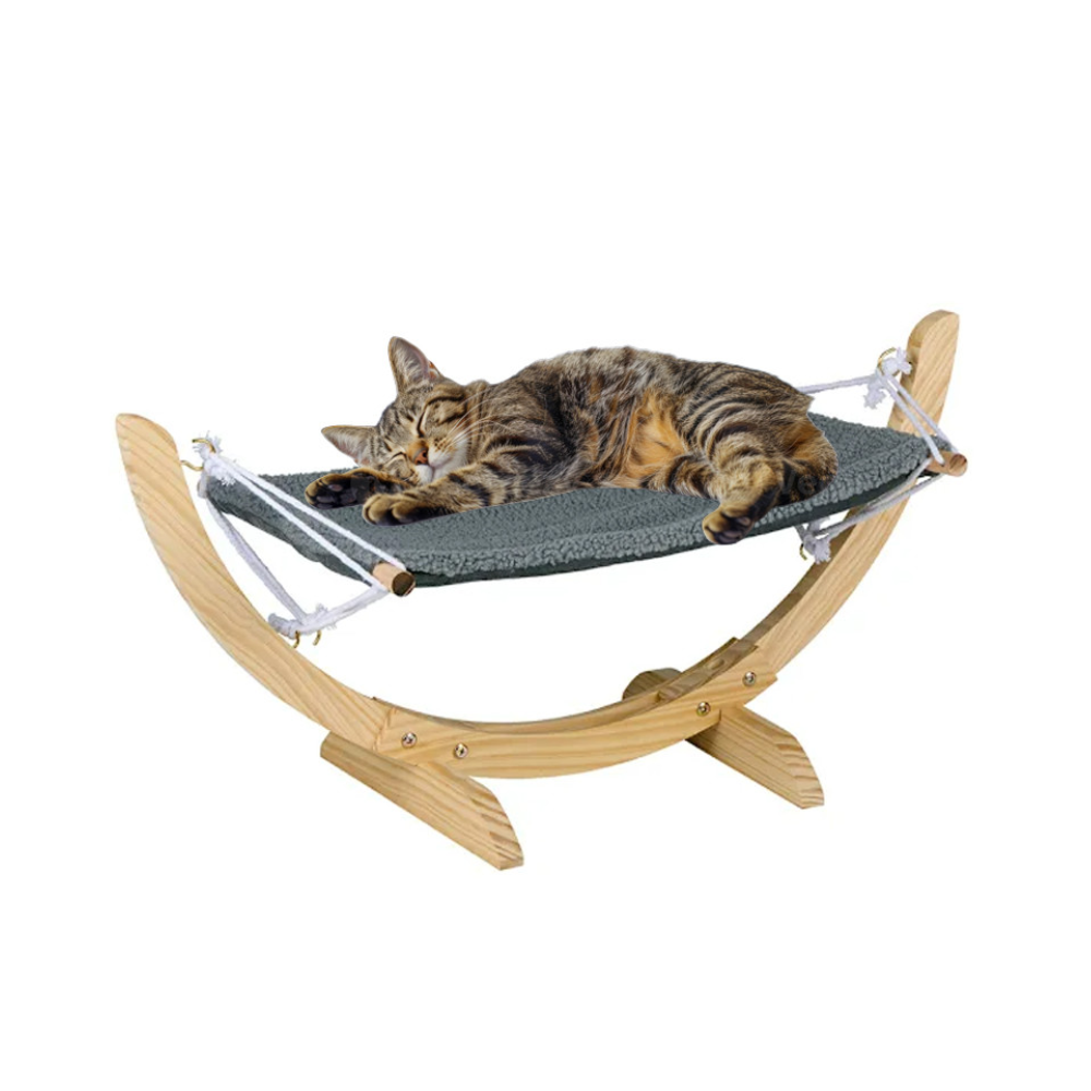Pružite svom ljubimcu udobno mjesto za odmor uz viseću mrežu za mačke, savršenu za opuštanje malo iznad tla. Zahvaljujući drvenom okviru i izdržljivoj tkanini, ova mreža nudi stabilnost, sigurnost i udobnost. Neutralan dizajn lako se uklapa u većinu enterijera, čineći je funkcionalnim i estetski privlačnim dodatkom vašem domu.