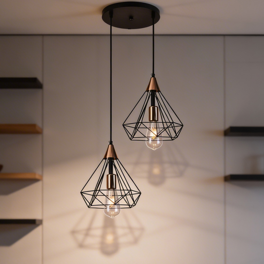 Luster koristi dvije E27 LED filament sijalice od po 6W, koje su uključene u cijenu, pružajući ugodnu, toplu rasvjetu uz veoma nisku potrošnju energije. Sa dimenzijama 270 × 480 mm i bazom 270 × 20 mm, model je vizualno uravnotežen i pogodan za osvjetljavanje dnevnih soba, trpezarija, kuhinjskih ostrva, hodnika ili ugostiteljskih prostora. Kabal dužine 1400 mm omogućava fleksibilno podešavanje visine prema potrebama prostora.