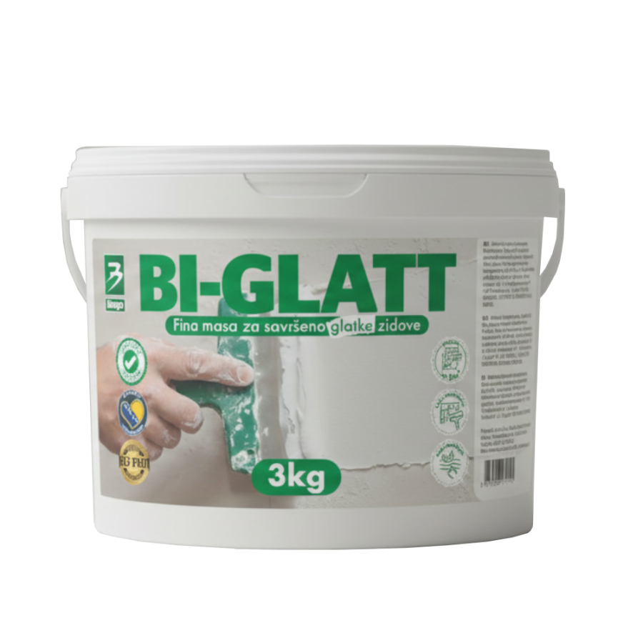 BI‑Glatt masa za gletovanje u pakovanju od 3 kg namijenjena je za fino izravnavanje zidnih i stropnih površina prije završnog farbanja ili dekorativne obrade. Formulacija omogućava lako nanošenje i jednostavno zaglađivanje, uz odlično prijanjanje na različite mineralne podloge. Nakon sušenja stvara čvrstu, glatku i homogenu površinu spremnu za daljnju obradu.