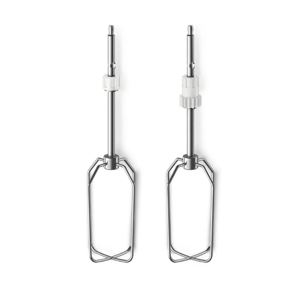 Dvostruke metlice osiguravaju glatko i prozračno miješanje, dok dodatak za miješenje omogućava pripremu lakših tijesta bez dodatnog napora. Posuda se okreće tokom rada, čime se postiže ujednačeno miješanje bez ručnog okretanja. Mikser se lako postavlja na postolje i može se koristiti i zasebno, bez posude.