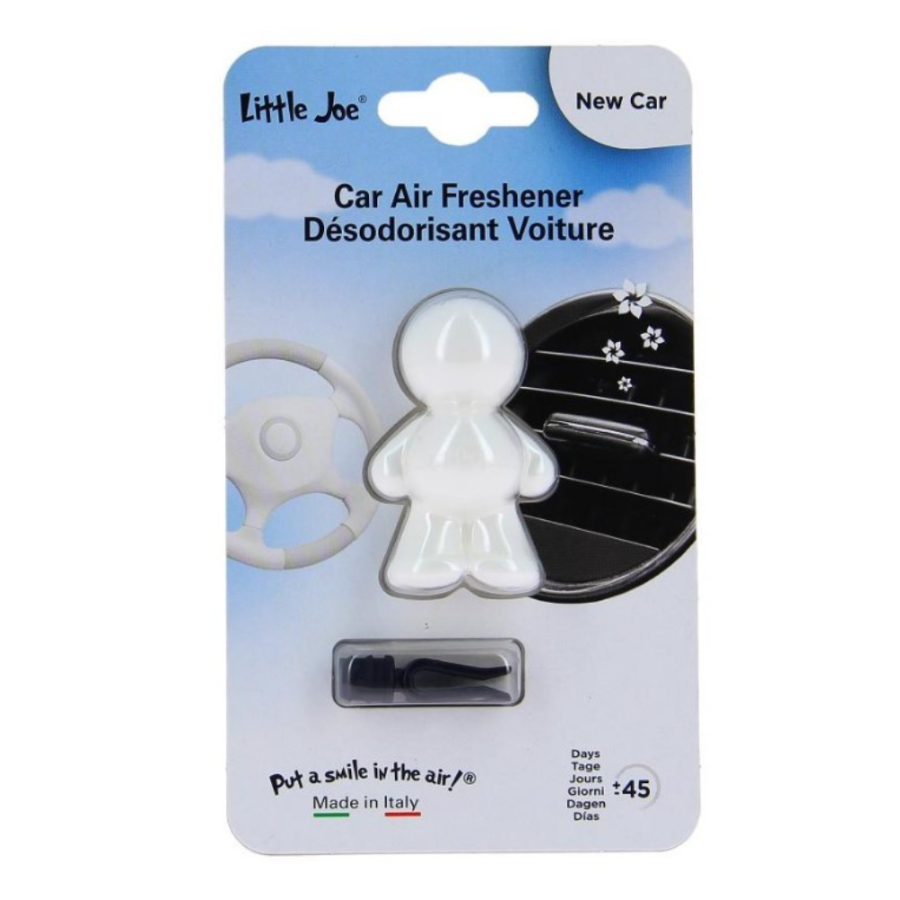Osvježivač zraka Little Joe New Car namijenjen je postavljanju na ventilacione otvore vozila, gdje oslobađa prepoznatljiv miris „novog auta“. Zahvaljujući praktičnom clip sistemu, lako se pričvršćuje na većinu ventilacijskih rešetki i ostaje stabilan tokom vožnje. Aktivira se protokom zraka, pružajući dugotrajan i ujednačen miris koji neutralizira neželjene mirise u kabini. Idealan je za vozače koji žele jednostavno i efikasno osvježenje enterijera uz diskretan i moderan dizajn.