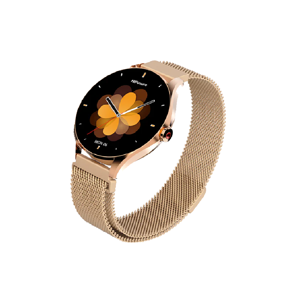 HiFuture Aura 2 Rose Gold dizajniran je kao kombinacija stila i funkcionalnosti. Njegov AMOLED ekran od 1.32 inča pruža jasne i žive prikaze, a zakrivljeno staklo doprinosi ugodnom vizuelnom dojmu i elegantnom izgledu. Metalno kućište u Rose Gold nijansi čini sat atraktivnim za svakodnevno nošenje, dok lagana konstrukcija omogućava udobnost tokom cjelodnevnih aktivnosti.