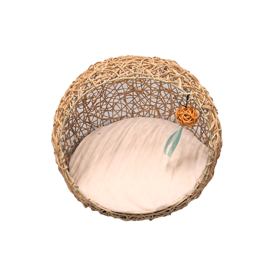 Ova kućica dolazi sa mekanim, udobnim jastukom koji osigurava toplinu i udobnost tokom odmora, a zahvaljujući prozračnom i čvrstom pletenom dizajnu, vaš ljubimac će imati osjećaj sigurnosti bez zatvorenosti. U unutrašnjosti se nalazi i viseća igračka, koja dodatno podstiče igru i radoznalost.