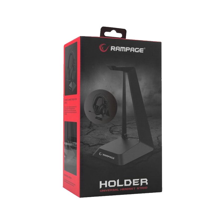 Stabilna konstrukcija osigurava da slušalice uvijek budu na dohvat ruke, dok kompaktan dizajn zauzima minimalno prostora na stolu. Postolje pomaže i u očuvanju oblika trake za glavu, produžavajući vijek trajanja slušalica. Moderni gaming izgled savršeno se uklapa uz ostalu Rampage i RGB gaming opremu.