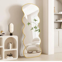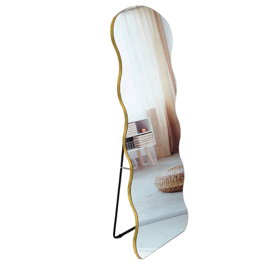 Valovito ogledalo sa zlatnim okvirom pravi je statement komad koji svaku prostoriju čini posebnijom. Njegov razigran oblik i elegantan okvir donose umjetnički šarm, dok istovremeno služi i kao funkcionalno ogledalo u punoj visini. Savršeno za one koji žele da dom odiše originalnošću i trendom, bilo da se postavi u spavaću sobu, dnevni boravak ili garderober.