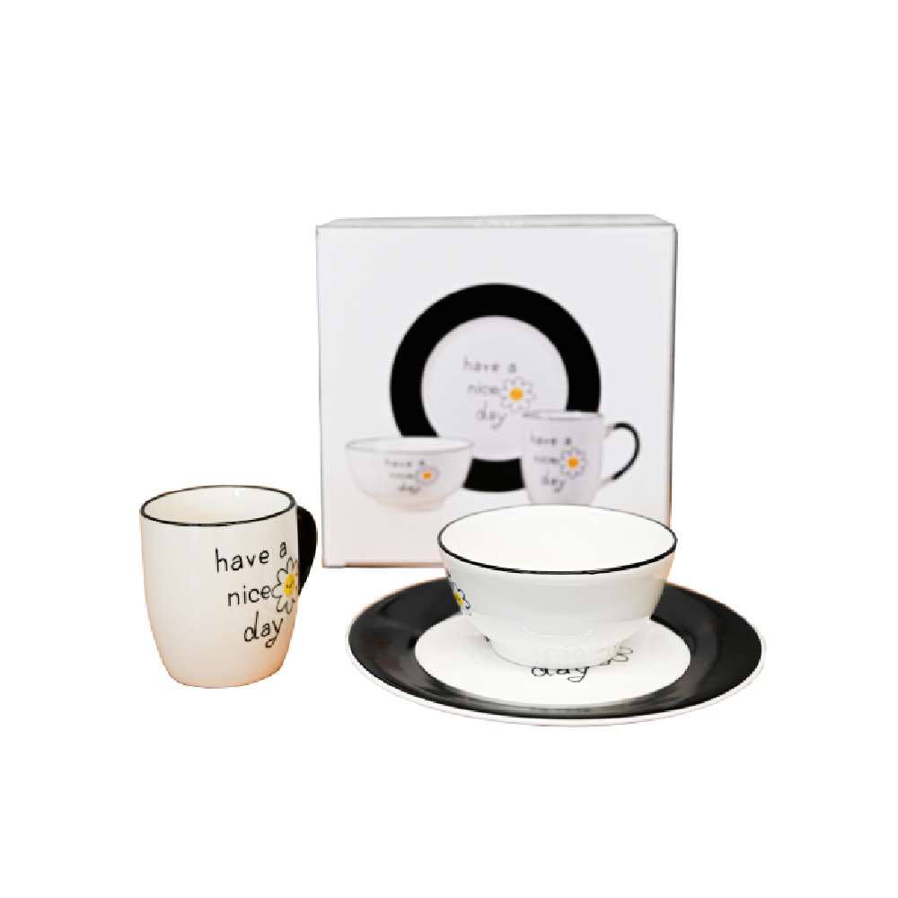 Ovaj set od tri komada savršen je izbor za svakodnevnu upotrebu ili posebne prilike. Sadrži plitki tanjir za glavna jela, duboki tanjir za supe i čorbe, te desertni tanjir za kolače i voće. Izrađen od visokokvalitetnog porcelana ili opalnog stakla, otporan je na ogrebotine, toplotu i hemijske uticaje.