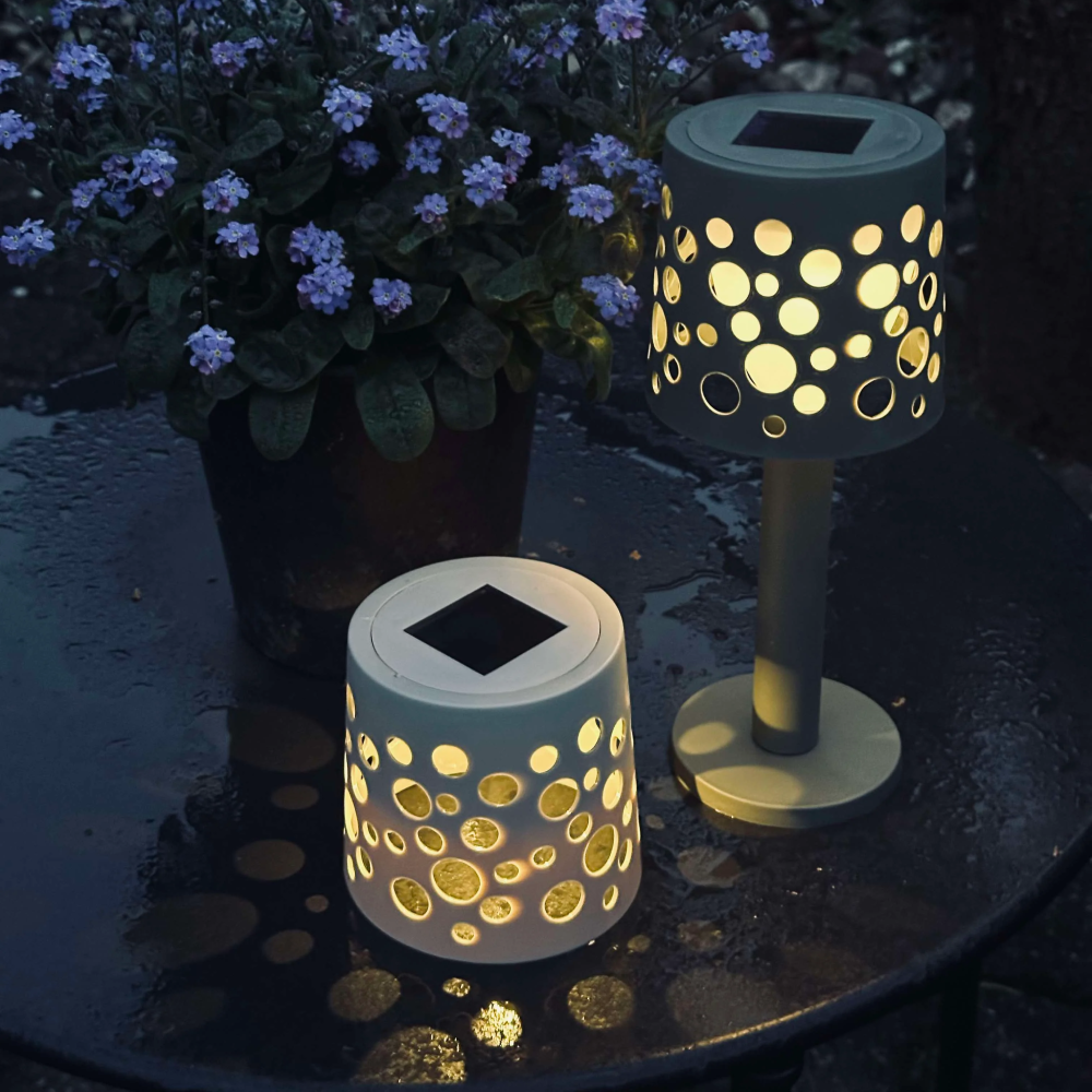 Sa IP44 zaštitom, lampa je otporna na prskanje vode i vremenske utjecaje, što je čini pogodnom za dugotrajnu upotrebu na otvorenom. Kompaktna i stabilna konstrukcija nudi jednostavno postavljanje na stol, zidnu policu ili bilo koju ravnu površinu u eksterijeru. Idealna je za dekorativnu rasvjetu, romantične večeri na otvorenom ili kao dodatni sigurnosni izvor svjetla u vrtu.
