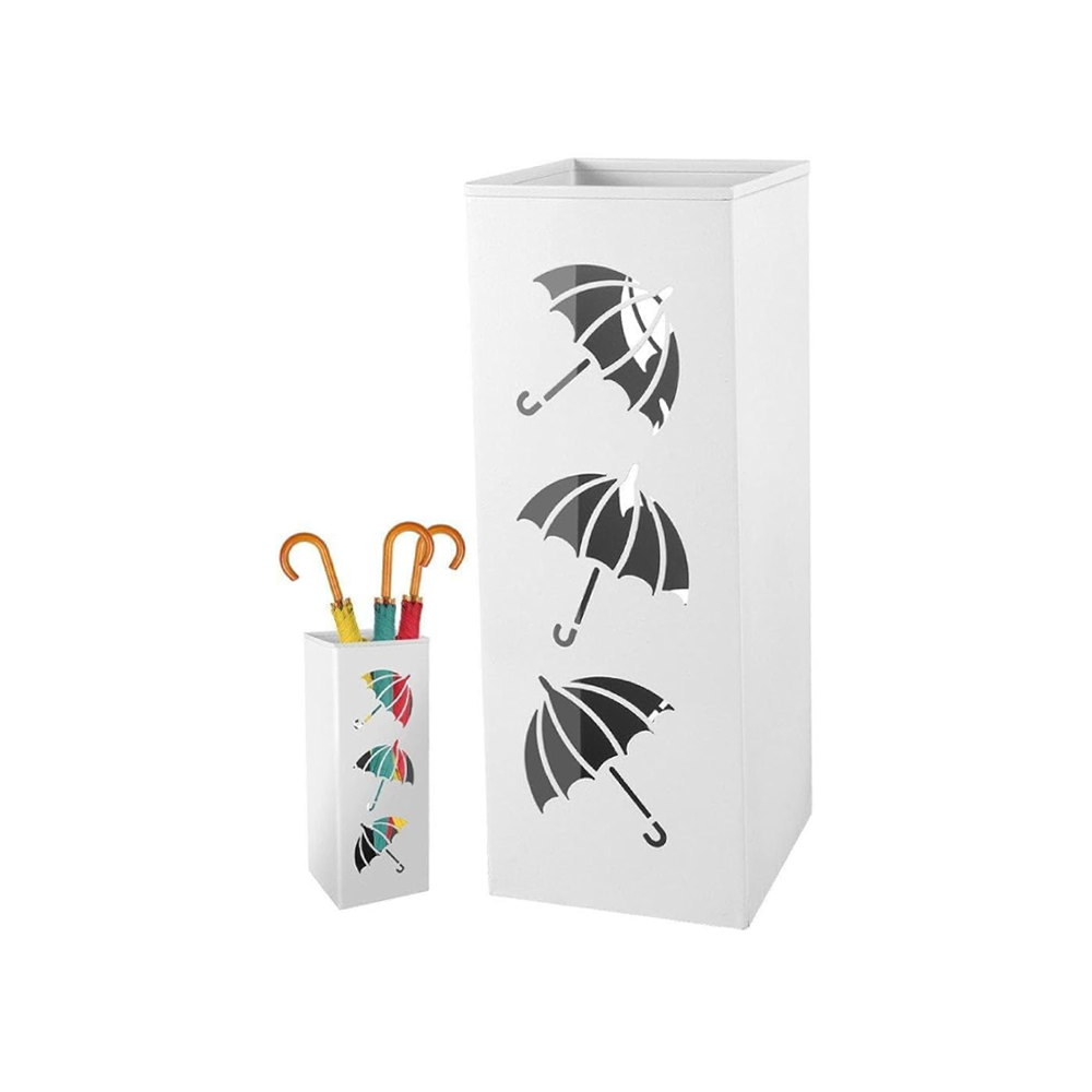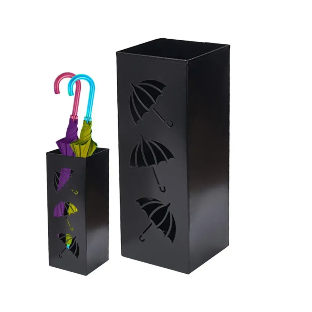 Izrađen od visokokvalitetnih materijala, stalak za kišobrane nudi dugotrajan i stabilan način za organiziranje kišobrana, kišnih štitova i drugih sličnih predmeta. Njegov otvoreni dizajn omogućava da voda s kišobrana brzo iscuri, čime sprječava nakupljanje vlage i održava vašu okolinu suhom i urednom.