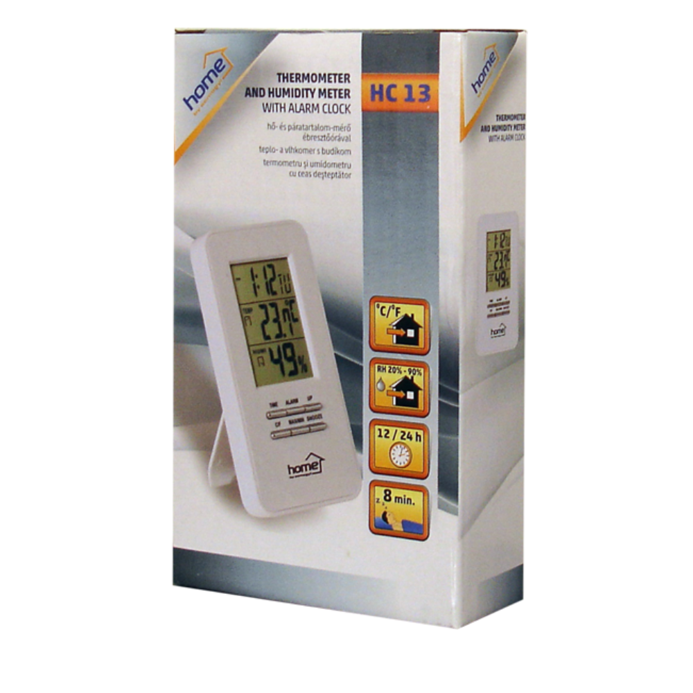 Vremenska stanica Home HC 13 praktičan je multifunkcionalni uređaj koji mjeri temperaturu, vlažnost zraka i prikazuje tačno vrijeme, datum i dan u sedmici. Idealan je za kućnu ili kancelarijsku upotrebu, a zahvaljujući samostojećem dizajnu i mogućnosti montaže na zid lako se uklapa u svaki prostor.