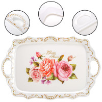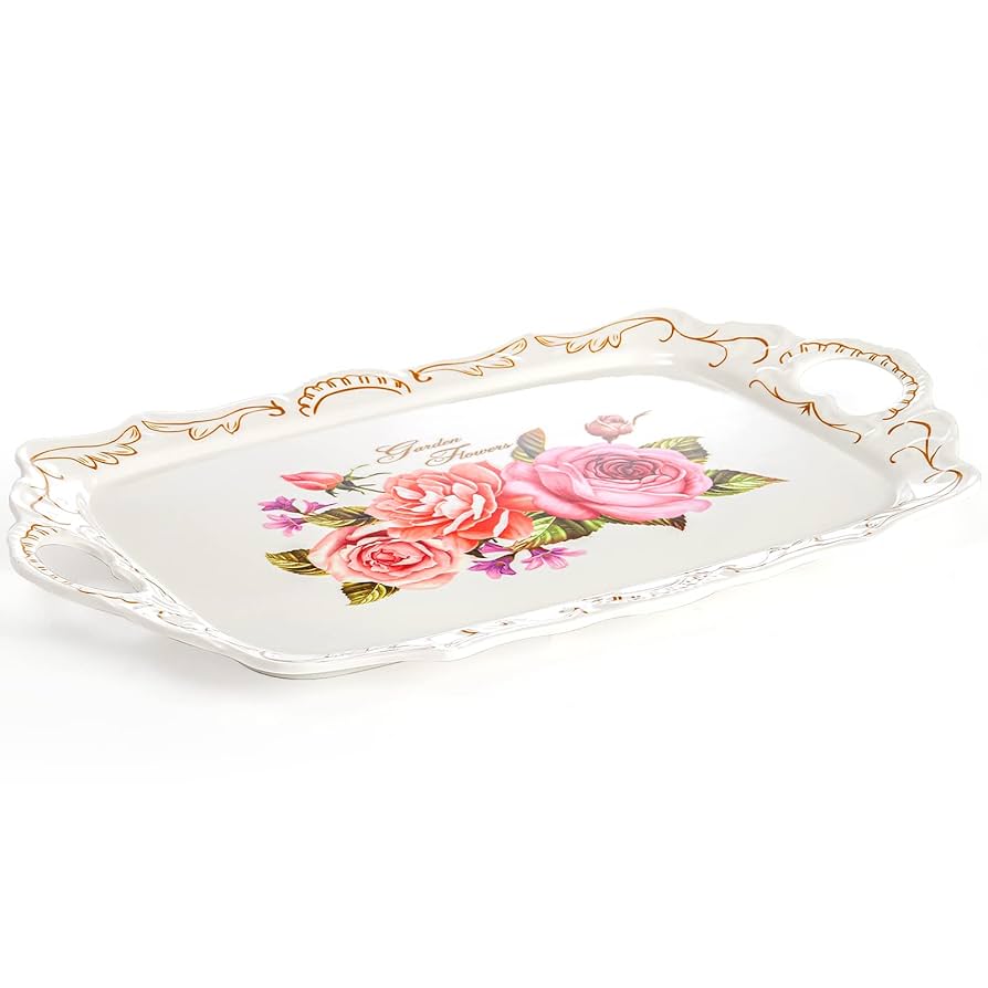 Ova dekorativna tacna dimenzija 43x28 cm savršen je dodatak svakom domu. Zahvaljujući modernom dekoru, tacna se može koristiti za posluživanje hrane, pića ili kao ukrasni element na stolu, komodi ili polici. Izrađena je od izdržljivog materijala koji osigurava dugotrajnost i lako održavanje. Njena praktična veličina omogućava raznovrsnu upotrebu, dok atraktivan dizajn unosi dozu elegancije u svaki prostor.