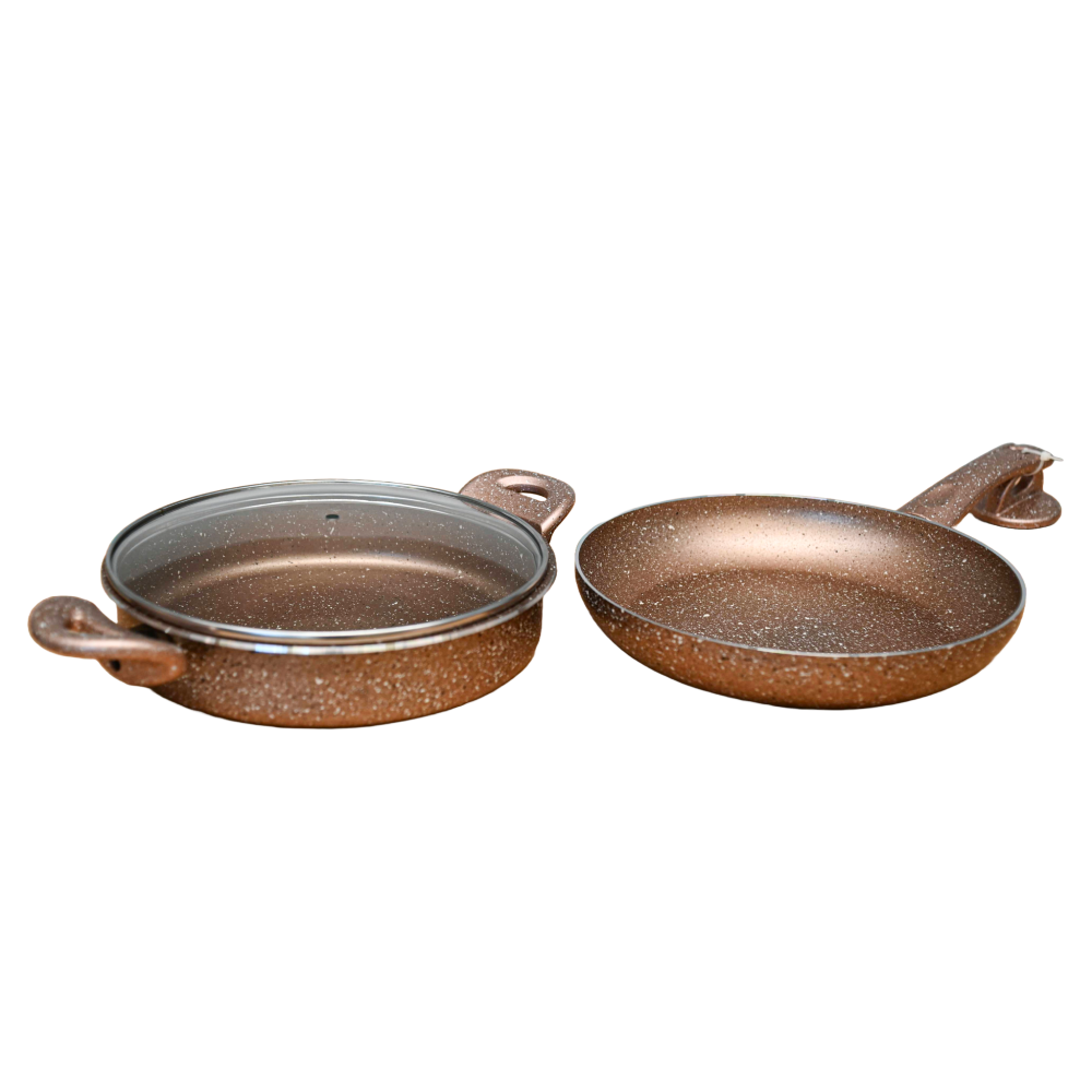 Granitna tava i šerpa dimenzija 26 cm i 24 cm predstavljaju savršen spoj funkcionalnosti, izdržljivosti i estetike u kuhinji. Zahvaljujući višeslojnom granitnom premazu, posuđe omogućava ravnomerno raspoređivanje toplote i sprečava lepljenje hrane, čime se olakšava priprema obroka uz minimalnu upotrebu masnoće. Tava je pogodna za prženje, dinstanje i pečenje, dok je šerpa idealna za kuvanje supa, variva i sosova. Oba komada su otporna na visoke temperature, grebanje i mogu se koristiti na različitim vrstama šporeta, uključujući indukcione. Ergonomske ručke pružaju sigurnost i udobnost pri rukovanju, a većina modela dolazi sa staklenim poklopcem. Lako se održavaju i pogodne su za pranje u mašini za sudove, što ih čini praktičnim izborom za svako domaćinstvo.