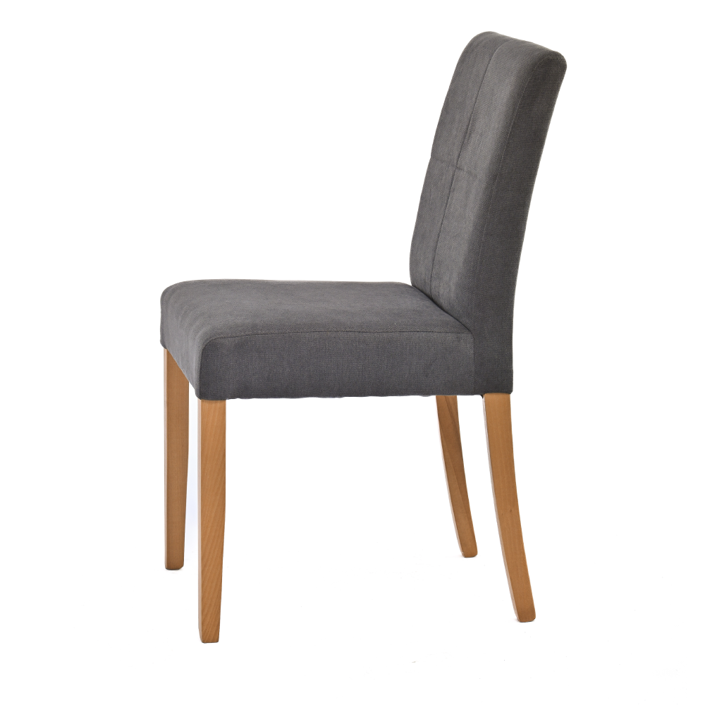 Trpezarijska stolica Klara donosi spoj elegancije, udobnosti i prirodnih tonova koji se lako uklapaju u različite stilove uređenja. Presvučena je štofom Soro 97 u modernoj antracit nijansi, koja pruža vizuelnu dubinu i praktičnost u svakodnevnoj upotrebi. Noge u natur boji daju toplinu i dodatnu harmoniju, stvarajući balans između modernog i prirodnog izričaja.