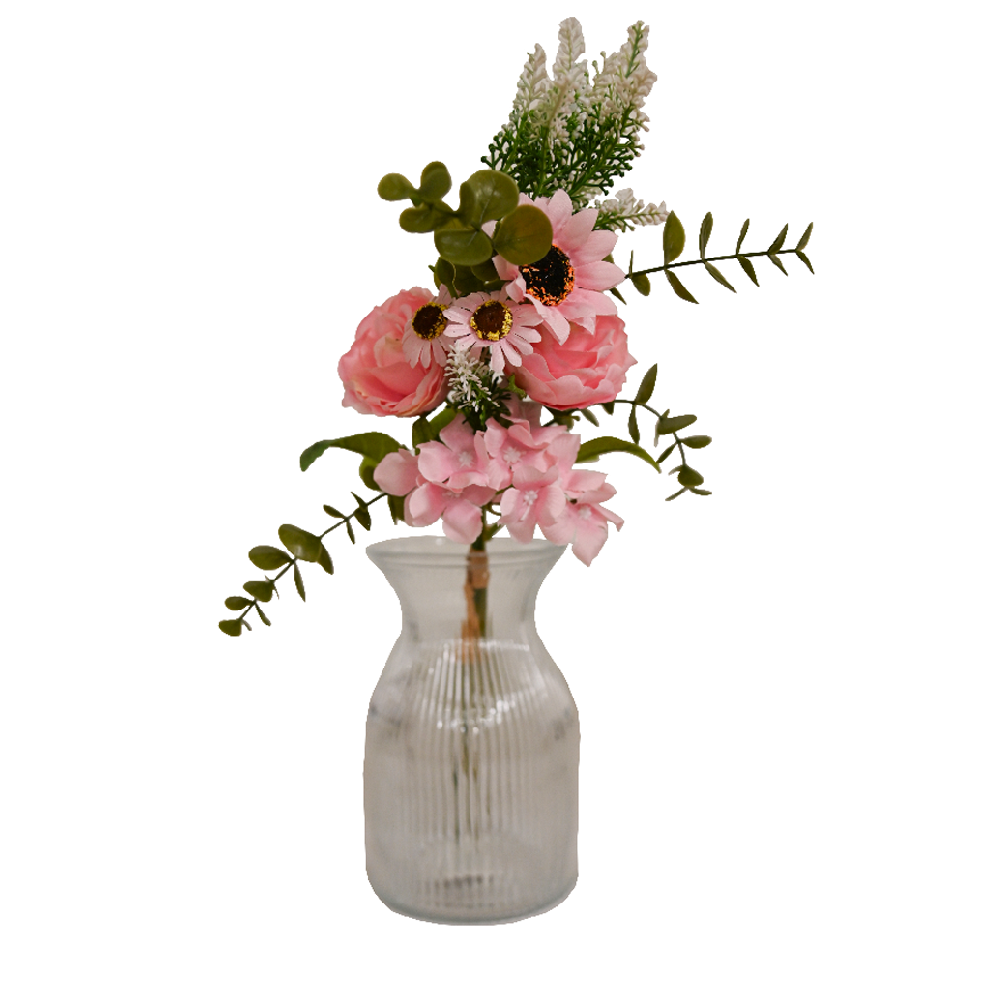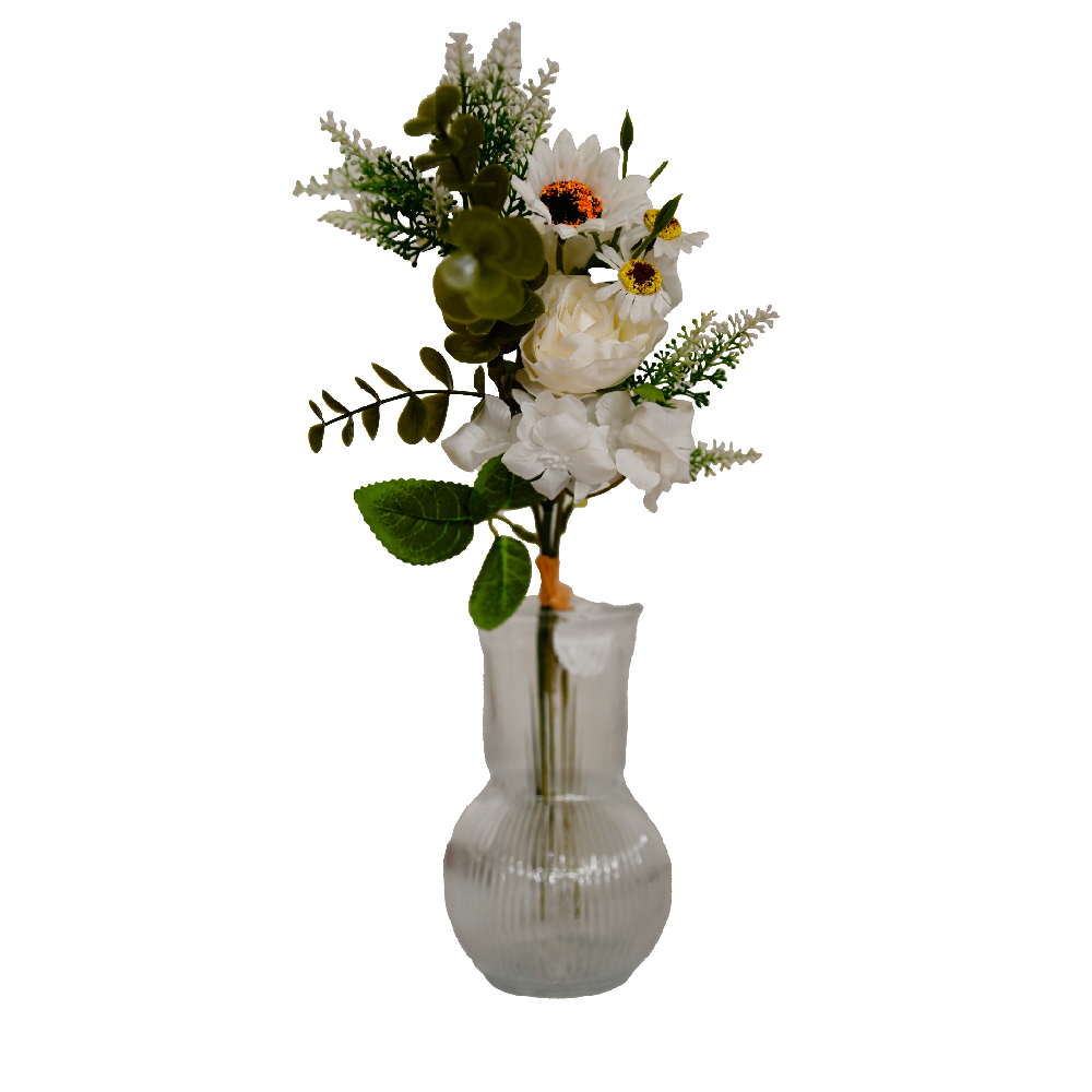 Umjetni buket visine 47 cm sastoji se od kombinacije cvjetova ruže i gerbera, izrađenih od kvalitetnih materijala koji daju prirodan i efektan izgled. Zahvaljujući svojoj visini i bogatom rasporedu cvjetova, idealan je za dekorativne vaze, bukete, svečane aranžmane i poklon‑setove.