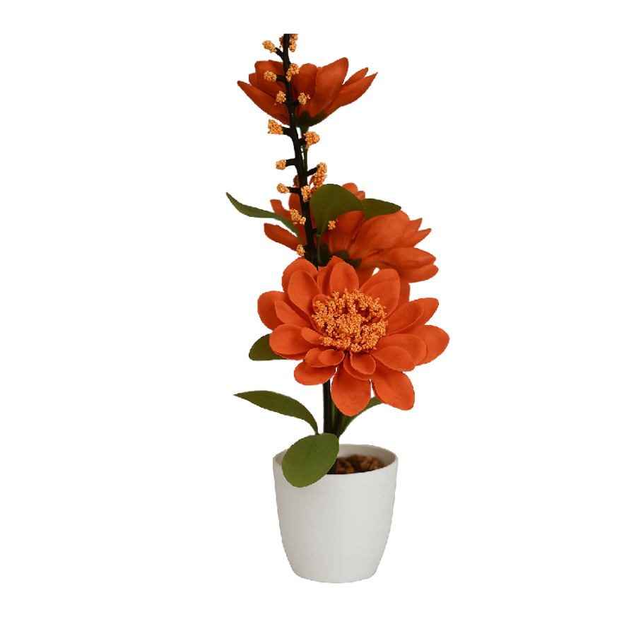 Umjetno cvijeće u saksiji 34 × 8 cm sastoji se od tri dekorativne grane smještene u urednu, kompaktnu saksiju. Biljka je izrađena od kvalitetnih materijala koji daju prirodan izgled i ne zahtijeva nikakvo održavanje, što je čini idealnim rješenjem za sve prostore gdje želite dodati malo zelenila ili cvjetnog dekora.