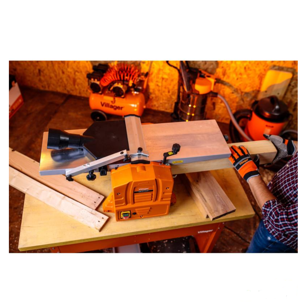 Električna stolna blanja Villager snažna je i pouzdana stacionarna mašina za obradu drveta, namijenjena za ravnanje, debljanje i preciznu pripremu drvenih elemenata. Sa snagom motora od 1500 W omogućava stabilan i ravnomjeran rad, što je čini pogodnom za kontinuiranu upotrebu u radionicama i kod ozbiljnijih hobi majstora.