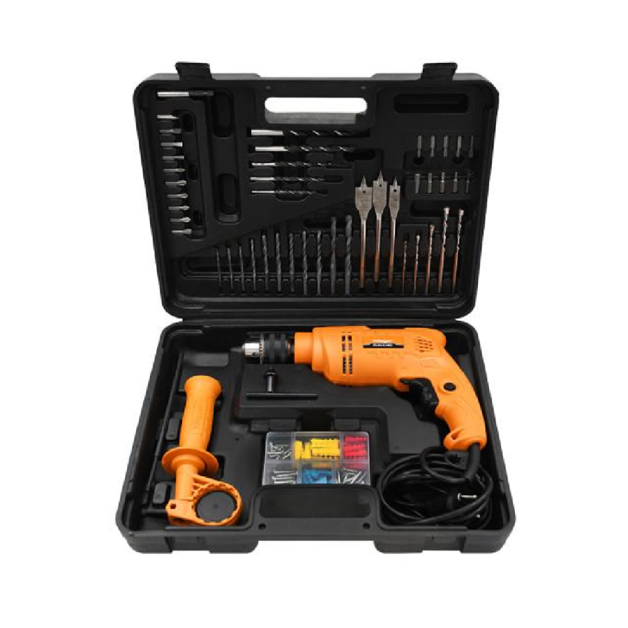 Električna udarna bušilica je višenamjenski električni alat, namijenjen za udarno bušenje u betonu i cigli, kao i za standardno bušenje u drvetu, metalu i plastici. Zahvaljujući mogućnosti promjenjive brzine i promjene smjera okretanja, može se koristiti i za zavrtanje i odvrtanje vijaka, što je čini praktičnim alatom za različite vrste radova.