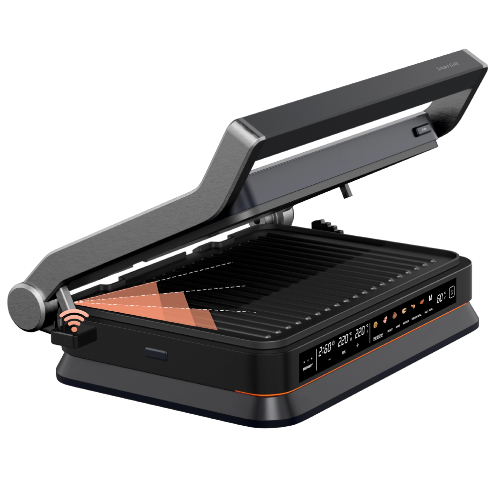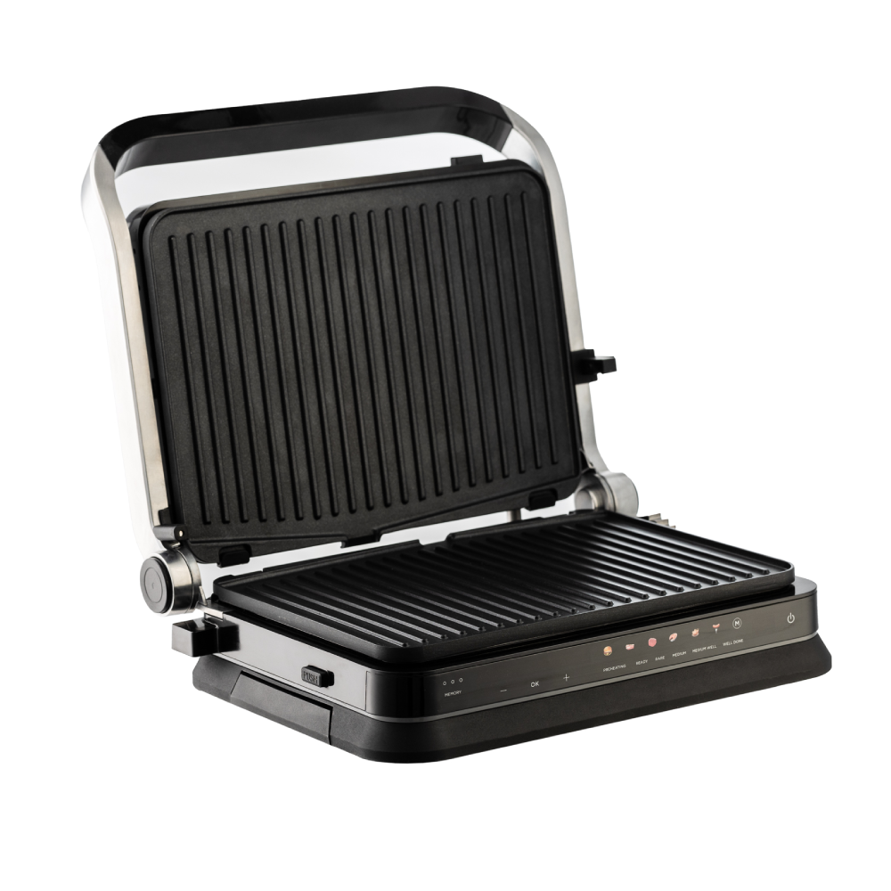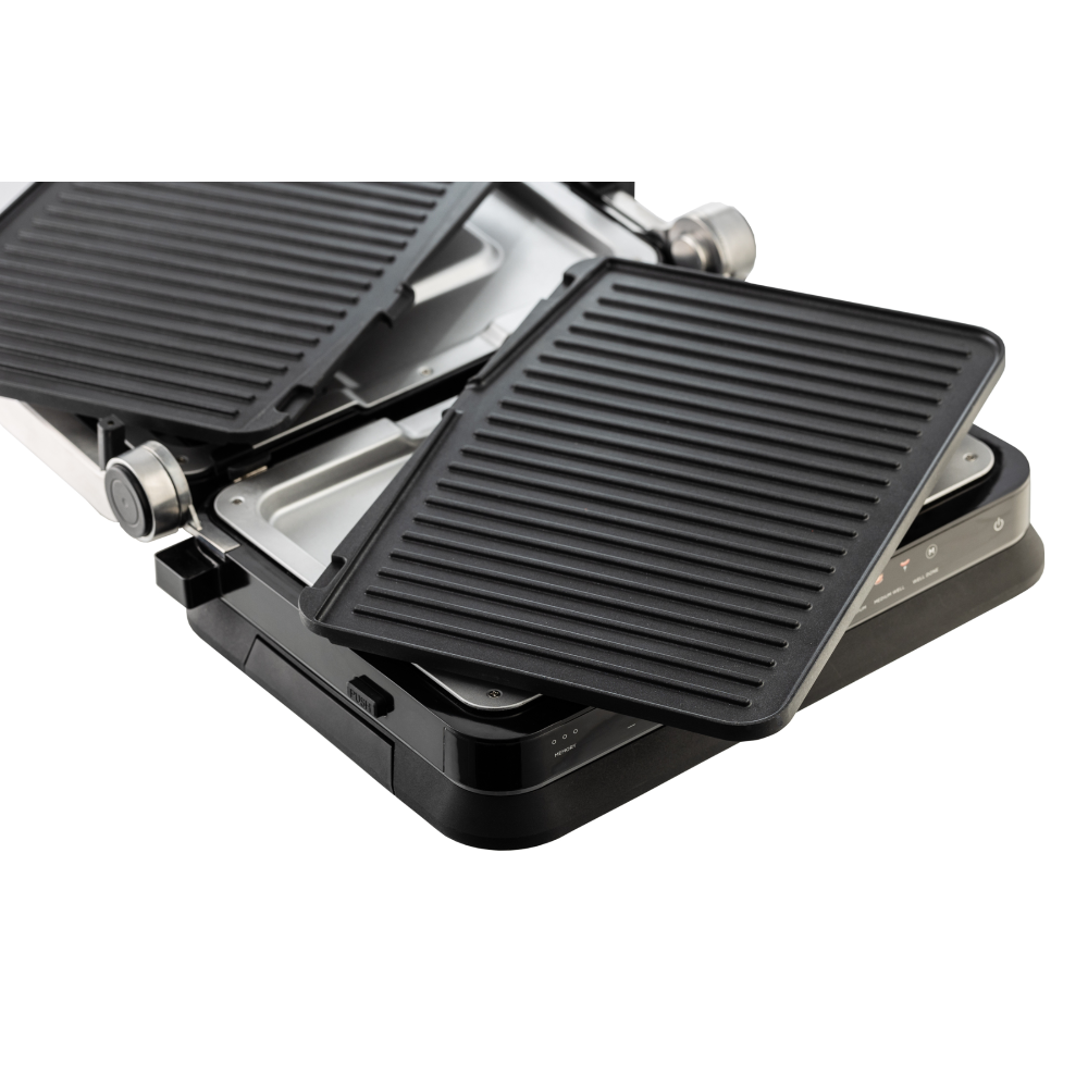 Neljepljive metalne ploče sprječavaju lijepljenje hrane i olakšavaju čišćenje nakon upotrebe. Digitalni termostat s LED displejem i touch komandama omogućava preciznu kontrolu temperature, čime se osigurava optimalno pečenje bez zagorijevanja.