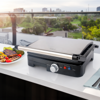 Neljepljive metalne ploče osiguravaju ravnomjerno zagrijavanje i sprečavaju lijepljenje hrane, pa je čišćenje jednostavno i brzo. Termostat sa podešavanjem putem tipke omogućava preciznu regulaciju temperature, što doprinosi savršenim rezultatima bez zagorijevanja.