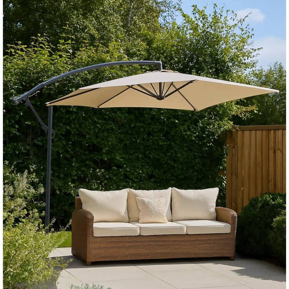 Veliki prečnik osigurava široku površinu hlada, što ga čini savršenim za terase, vrtove, dvorišta, ugostiteljske objekte ili prostor pored bazena. Neutralna svijetlo siva boja daje moderan i elegantan izgled koji se lako uklapa u različite stilove eksterijera.